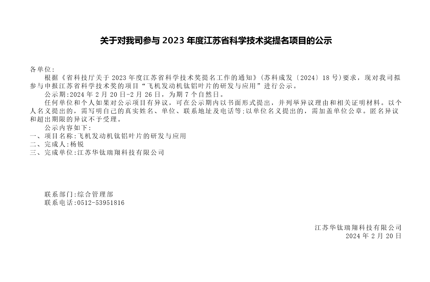 • 關于對我司參與2023年度江蘇省科